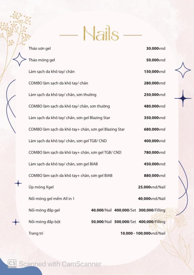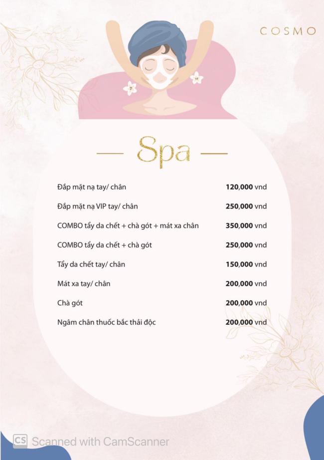 | 코스 | chăm sóc sức khỏe chân tay, Làm đẹp/Estatic, scrub, làm móng |